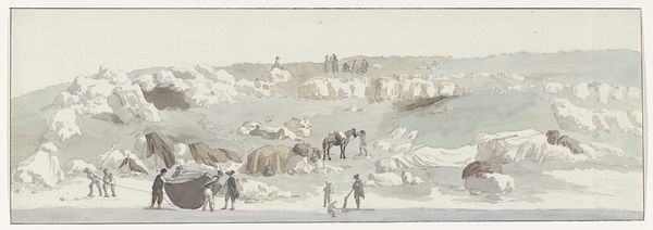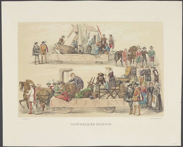Edward Duncan created this aquatint titled "Coach Stuck in the Snow." Painted during the height of the Industrial Revolution, the image depicts the vulnerability of man-made systems when confronted by the power of nature. The scene might remind us of the precarity of life in the face of forces beyond our control. The painting presents a tableau of social hierarchy through the figures’ relationships to the bogged-down carriage. The supposed beneficiaries of the coach—the presumably wealthy passengers inside—are dependent on the labor of the working-class men and animals struggling in the snow. We see a moment of collective struggle across class lines; an image of people facing adversity. We might reflect on what binds us together across these differences, especially during moments of crisis.