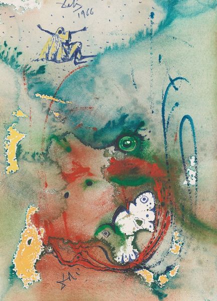 Editor: Here we have Cyprián Majerník’s "Satyr" from 1942, rendered in watercolor. The colors are quite muted, almost as if it’s faded with age. What strikes me most is how ghostly and ephemeral the figure appears. How do you interpret this work? Curator: Oh, Majerník. Such a wonderfully tormented soul, which bleeds, quite literally, into his work. It reminds me of peering through fog, trying to grasp at something just out of reach. The Satyr, traditionally a symbol of mirth and wild abandon, feels…trapped. Those muted colors, the watery application – it’s as if the artist is containing something, some dark, internal landscape. What do you make of the eyes? Editor: They're wide and almost fearful, a sharp contrast to the supposed revelry of a satyr. Almost unsettling. Curator: Exactly! They hint at a deep anxiety, amplified by the precariousness of the watercolor medium. It’s a window into Majerník’s psyche, particularly poignant considering the turbulent times in which it was created. Think about Europe in 1942. Is it the wildness that is contained, or a fear of a more malevolent, wild force? Editor: That adds a chilling dimension. So it's less a celebration of freedom and more an imprisonment of raw instinct. I hadn't considered that. Curator: Precisely. Or perhaps Majerník himself felt imprisoned by something, whether external or internal. These whispers, you see, that is the deliciousness of a painting like this; there is never just one truth. What remains is something unspoken. Editor: I see it in a totally different light now, less like a faded mythical creature and more like a repressed emotion struggling to break free. Curator: Indeed! And isn’t it marvelous when a single artwork can whisper so many stories?