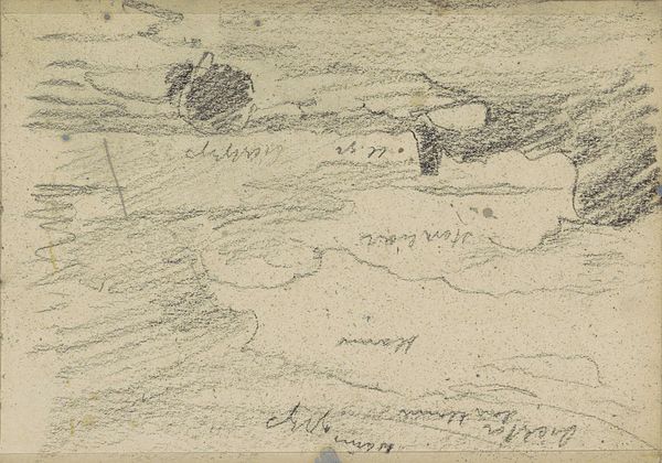 This drawing, "Land met een boerderij," was created by Gerrit Willem Dijsselhof using graphite. The composition is immediately striking with its horizontal orientation and subdued tonal range. The drawing evokes a quiet, contemplative mood through its delicate marks. Dijsselhof uses layered lines to create depth, with the foreground marked by denser, more defined strokes that fade into softer, sketchier lines towards the horizon. The structures, possibly a farmhouse, are rendered with simple geometric forms, emphasizing a structuralist approach to depicting space. This simplification reduces the landscape to its essential elements, revealing an underlying framework of lines. The use of graphite allows for subtle gradations in tone, creating a sense of atmospheric perspective. The marks and annotations on the drawing invite us to consider the artwork not just as a representation of a landscape, but also as an exploration of the fundamental properties of line and form. This intersection between representation and abstraction opens a space for ongoing interpretation.