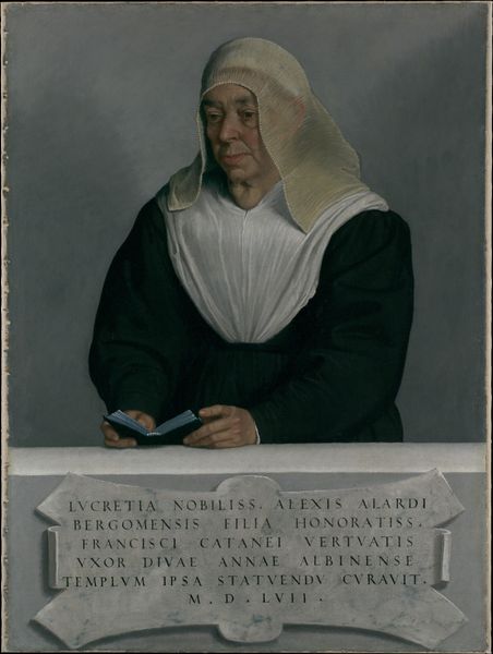 This portrait of Magdalena van Werdenborgh, made by an anonymous artist, presents us with potent symbols of her status and piety. At the top left, the coat of arms—a visual assertion of her noble lineage—yet it is the rosary in her hands that truly captivates. This string of beads goes beyond mere religious accessory; it’s a cultural artifact. The rosary's presence reminds us of similar devotional objects across cultures, like prayer beads in Buddhism or Islam. Consider how the act of counting prayers, a practice deeply embedded in various faiths, transcends time and place. This connects the individual to a collective consciousness. Here, in Magdalena’s hands, it reflects the internalization of faith, an intimate connection to the divine. Such devotional imagery is not linear, but cyclical. It resurfaces, evolves, and takes on new meanings. In this way, the rosary echoes through time, bearing the weight of history and devotion.