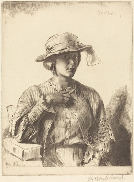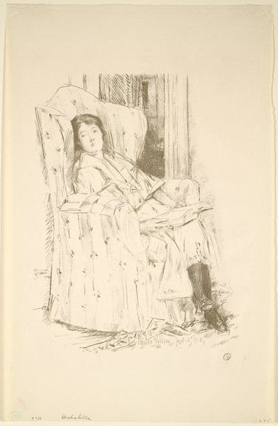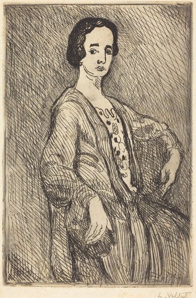 Albert Belleroche made this print of Rosamund, called Sporting Style, at some point in his life, using lithography on paper. Looking at this print, you can really see Belleroche's process; it's all about these delicate, almost scribbled lines. It's like he's thinking out loud with his pencil, figuring out the form as he goes. And the way he uses the grey tone of the lithograph, it's so subtle, almost ghostly. Take a look at the way he’s rendered the tie. It’s just a few quick strokes, but it completely captures the way the fabric folds and drapes. The light catches the surface, and the shadowy areas have this almost velvety softness. This focus on light and shadow reminds me a little of Vuillard and the Intimists, who were also exploring everyday scenes with a similar sense of quiet observation. It’s like he’s inviting us to slow down and notice the beauty in the ordinary.