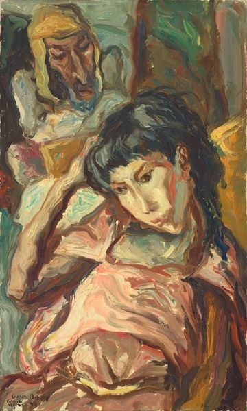 Alexandru Ciucurencu created this oil painting, titled "Woman Reading," using brushstrokes that are thick and textured, giving the painting a tactile quality. The visible brushwork invites us to consider the physical act of painting. Each stroke is a record of the artist's gesture, building up the image layer by layer. Look at how Ciucurencu applied paint generously, almost sculptural, to render the folds of the woman's dress and the surrounding furniture. This isn't about illusionism; it’s about the materiality of paint itself. The way the paint sits on the canvas gives "Woman Reading" a sense of immediacy and presence. Ciucurencu's technique is less about depicting a scene and more about capturing a moment, emphasizing the materiality of the medium. It’s this intense focus on process that elevates the work, challenging the traditional hierarchy between fine art and the skilled application of craft.