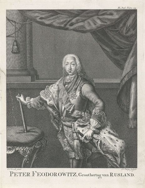 Pieter Schenk made this portrait of Johann Adolph II van Saksen-Weissenfels, likely sometime between 1660 and 1711, using a printmaking technique. Look closely, and you’ll see that the finely detailed lines create a range of tones, giving shape to the figure and his elaborate clothing. This wasn't just drawing; it was a labor-intensive, skilled process. The engraver used a tool to cut lines into a metal plate, which was then inked and printed. The density and depth of the lines determine the darkness of the printed image. Consider the social context: printmaking made images more widely available, yet the meticulous work still signified value. This portrait reflects the status of the sitter, Johann Adolph, through the artistry and time required to produce it. The very act of creating such a detailed print elevates the subject. Thinking about the material and process helps us understand the cultural importance of images like this one, and how they blurred the lines between craft, art, and social status.
