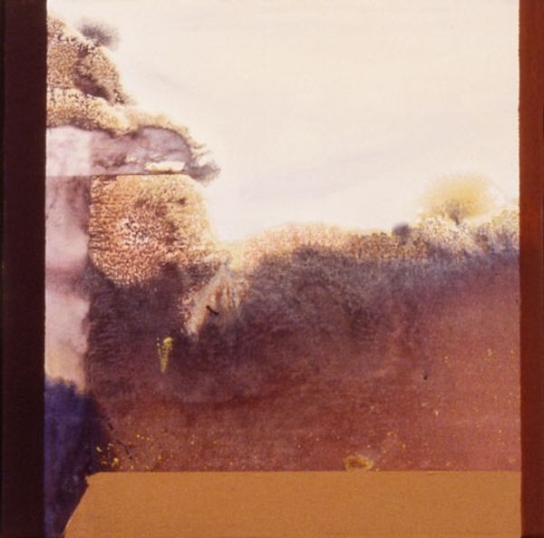 Curator: Ronnie Landfield created "Approaching Arkansas" in 1986, an acrylic on canvas. Landfield’s work evolved, he became known for vibrant color-field paintings that evoked feelings of vastness and tranquility. Editor: It’s incredibly ethereal, almost dreamlike. The soft gradations of blues and whites, with the barely-there horizon line, make it feel vast and quiet. Like looking out over a foggy landscape. Curator: His shift toward luminous landscapes can be partially explained by considering the broader artistic environment of the 1980s, one increasingly sensitive to environmental concerns and the renewed interest in nature after the more conceptual movements of the prior decade. Think of it as an aesthetic embrace mirroring a cultural one. Editor: And structurally, the composition reinforces that feeling. The bands of color, the hazy, blended edges, they create a real sense of atmospheric perspective. It's all about light and color interactions, creating depth and distance through purely abstract means. There are semiotic concepts operating here. The viewer actively builds a feeling or sense through shapes and light. Curator: It’s interesting how the frame almost boxes in this open space, directing how viewers encounter and interpret its boundlessness. Museums also shape these experiences. Consider the exhibit's role to impact perception in a number of directions. Editor: I suppose the hard edges offer contrast, and yet there's a subtle balance there. That off-white strip on the right echoes the tones in the misty horizon, and even the matte quality of the acrylic enhances that softness. It makes the color more felt, even at such subtlety. Curator: These were exhibited during an era where art institutions began emphasizing the experiential nature of art and encouraging a focus on emotion as much as intellect, perhaps explaining why viewers find resonance even today. Editor: A quiet piece for the modern museum, isn't it? Curator: Definitely, and hopefully one that invites reflection, not just passive viewing. Editor: Absolutely. It leaves one wondering, after all.