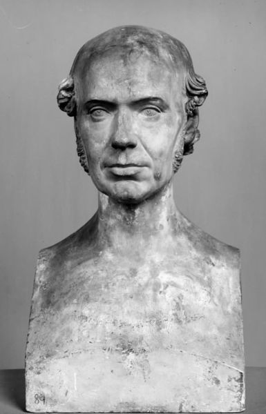 This marble bust of Tandlæge J.J. Jansen was crafted by H.W. Bissen and now resides at the SMK. Bissen, a prominent sculptor, lived in a time when portraiture served as a powerful tool for shaping public identity and commemorating status. In making this sculpture, Bissen was working within the traditions of neoclassical sculpture which sought to express individuality through a focus on realism. Notice the detail in Jansen's hair and the lines around his eyes; Bissen captures not just likeness, but also the essence of a man who occupied a specific place in 19th-century Danish society. As a dentist, Jansen belonged to a rising professional class, and this bust asserts his importance within that social framework. While ostensibly an objective likeness, the sculpture subtly elevates Jansen, linking him to the classical ideals of beauty and intellect. It invites us to consider how such representations uphold certain societal values, defining who is deemed worthy of remembrance.