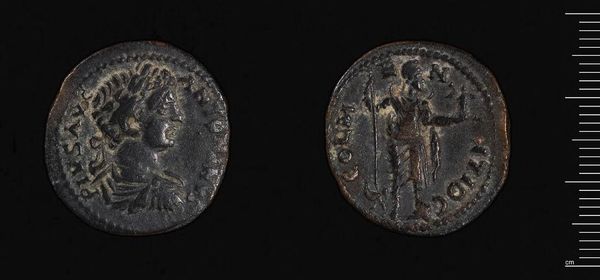 Curator: This coin of Odessos, issued under Emperor Septimius Severus, offers a glimpse into the intersection of power, trade, and cultural identity. Editor: It's small, unassuming, yet weighty—bronze worn smooth, the images faded, but hinting at profound stories of its circulation. Curator: Absolutely. Consider the context: Severus, a North African emperor, extending his influence through coinage, shaping perceptions and solidifying rule. What does it mean to have his image literally impressed upon the economy of Odessos? Editor: It speaks to the control of resources, doesn't it? The coin itself embodies labor—the mining, smelting, crafting—all mobilized for political messaging and economic control. Curator: And the coin's imagery, we must also consider the construction of imperial authority and the projection of Roman power onto the periphery. This coin becomes a micro-manifestation of colonial dynamics. Editor: It's compelling to think about the hands this passed through, the transactions it facilitated. This little bronze disc connects to massive social and economic structures. Curator: Indeed. It's a reminder that even the smallest object can hold immense historical weight, raising questions about identity, power, and representation. Editor: A humble artifact, transformed into a conduit for complex narratives of empire and exchange.