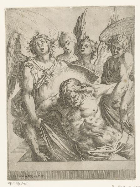 This print, showing Jupiter embracing Cupid, was made by Marcantonio Raimondi in the early 16th century using engraving. This intaglio process involves cutting lines into a metal plate, applying ink so it fills the incisions, and then using a press to transfer the image to paper. Look closely, and you'll see the composition is built entirely from these lines; they define the figures, create tonal variation and depth. Raimondi was a master of this technique, and his prints were widely distributed. This one reproduces a fresco by Raphael, a leading painter of the Italian Renaissance. Engravings like this played a crucial role in disseminating artistic ideas. They were luxury goods, certainly, but far more accessible than paintings. Raimondi’s skill allowed Raphael’s design to be shared with a much wider audience. The graphic quality, born of the engraving process itself, gave the image a striking visual power, quite distinct from the original fresco. So, while this print documents Raphael’s artistry, it’s also a testament to Raimondi’s craft, and the power of printmaking in early modern Europe.