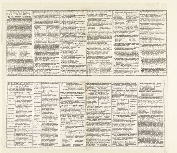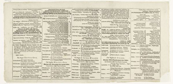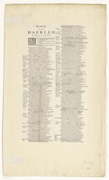 Editor: Here we have “Fondslijst met toneelstukken te koop bij Barker & Son te Londen,” which translates to something like "List of Plays for Sale at Barker & Son in London," dating from after 1803. It's a print on paper, essentially a theatrical advertisement. What immediately strikes me is how the aged paper and dense typography give it the aura of another era. What do you see when you look at it? Curator: I see a fascinating glimpse into the commercial side of theatre in London during a period of significant social and political change. Think about it: this isn't just a list of plays; it’s a commodity being marketed. Consider Covent Garden's place in the city - a hub of commerce and entertainment, but also of social unrest. The French Revolution cast a long shadow. The poster isn’t neutral; its seemingly simple act of listing plays reflects evolving attitudes towards art and entertainment and their growing availability to a wider public. Editor: So, the list itself is a political document, of sorts? Curator: In a way, yes. The choice of plays, their arrangement, the very act of selling them as printed texts - all this contributes to the cultural landscape. The decorative Neoclassical style hints at aspirations of taste and refinement, aligning theatre with intellectual and social ambitions. Who do you think was the target audience here? What kind of message would this kind of readily available textual form give, say, the monarchy? Editor: I guess more literate members of the growing middle class, people with the time and inclination to attend the theatre and read plays... but surely, they might challenge previously fixed hierarchies by making theatrical works more accessible. Theatres were historically exclusive! Curator: Exactly! By understanding the forces shaping it, like commercial theatre, available reading materials, and accessibility, we begin to grasp the intricate public role of art. Editor: It's amazing how much context is embedded in this piece of ephemera. I see it differently now!