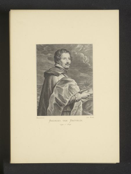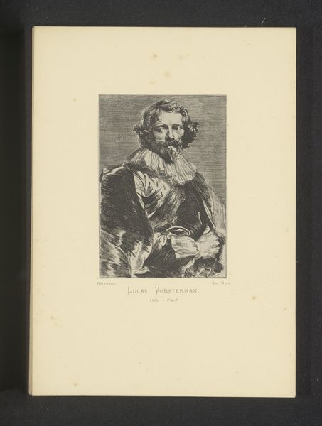 Curator: Let's discuss this reproduction of an engraving depicting Maerten de Vos by Aegidius Sadeler, created before 1877. What strikes you most immediately? Editor: Its intensity! Despite being a reproduction, the gaze feels incredibly direct, almost confrontational. The sitter looks both self-assured and subtly burdened. It makes me wonder about his world and what he was grappling with. Curator: Yes, the portrait possesses a notable gravity. Structurally, the oval frame contains and directs our focus entirely on the meticulously rendered details of his face and attire. Note the engraver's masterful handling of line to create depth and texture, particularly in the fur collar and beard. It is, fundamentally, about virtuosity in representation. Editor: I appreciate the technique, of course, but I can't help but think about de Vos’s status in society as a member of the painter's guild. We are seeing a performance of wealth and masculine identity that reflects that period of rigid class divisions. The gaze you note, and this controlled presentation, are carefully constructed elements of power, in a sense. Curator: Power perhaps, but also a certain introspective quality. The Baroque sensibility is visible in the elaborate frame, however, it remains somewhat subdued in the details of his attire and expression. It is a fascinating interplay between restraint and embellishment. I suggest, here, a reflection upon the position and role of an artist in the shifting landscape of late 16th century European thought. Editor: I agree to a certain point, but without losing sight of how that "thought" was inherently filtered through structures of power and privilege. This work isn't created in a vacuum. So the controlled performance aspect is significant here. This artwork reflects a system that allows people in privileged positions to control the historical narrative in posterity. Curator: I appreciate your view of the sitter’s perspective being rooted in a very structured social hierarchy. It brings a dynamic edge to what initially might seem like simply an exercise in masterful technique. Editor: Exactly, the beauty of art lies in its ability to act as both a product of and a mirror to society, inciting discourse beyond aesthetics.