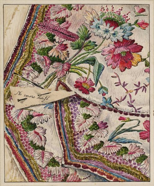 This furnishing fabric, whose maker is unknown to us, presents a lively dance of botanical motifs, rendered with dyes on cotton. Dominating the composition is a curious fruit, perhaps a pineapple, flanked by an array of stylized blossoms and twisting fronds. Consider the pineapple—a symbol that journeyed from the tropics to become a European signifier of luxury, its image gracing textiles and architectural details alike. This appropriation mirrors the twisting tendrils, evocative of ancient Greek acanthus leaves seen in Renaissance art, symbols of vitality, rebirth, and memory. The stylized rendering, a cultural echo, resonates with the subconscious yearning for nature's bounty, a powerful force engaging viewers on a deep, subconscious level. Observe how such motifs resurface, evolve, and take on new meanings in different historical contexts, weaving a rich tapestry of cultural memory.
