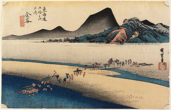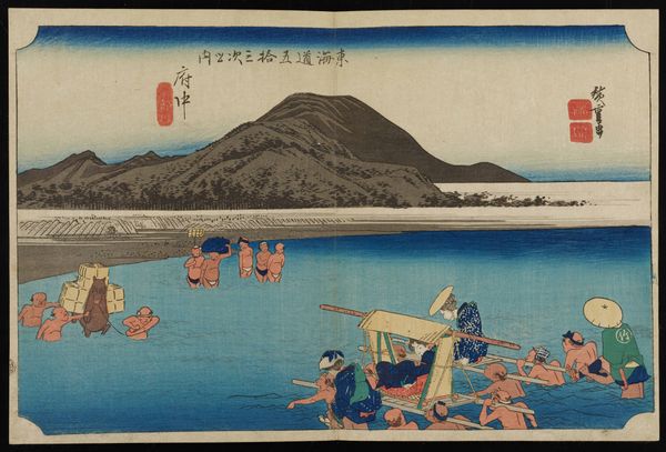 This is "Fuchū," a woodblock print by Utagawa Hiroshige, created as part of the series "Fifty-three Stations of the Tōkaidō," a meditation on travel in 19th century Japan. The print freezes a moment at the crossing of the Abe River. Hiroshige captures a tableau of human activity, as travelers and porters wade through the cool water. The figures, rendered with a delicate hand, convey a sense of labor and leisure. Notably, the print depicts a class divide, with some figures, likely of higher status, being carried across the river in a kago, or palanquin. What does it mean to move through a landscape? Hiroshige asks us to reflect on the physical, emotional, and social dynamics of travel. He reminds us that journeys, even those through the most picturesque landscapes, are always shaped by the realities of labor, class, and the body. The scene asks us to reflect on who has the luxury of being carried, and whose bodies bear the weight.