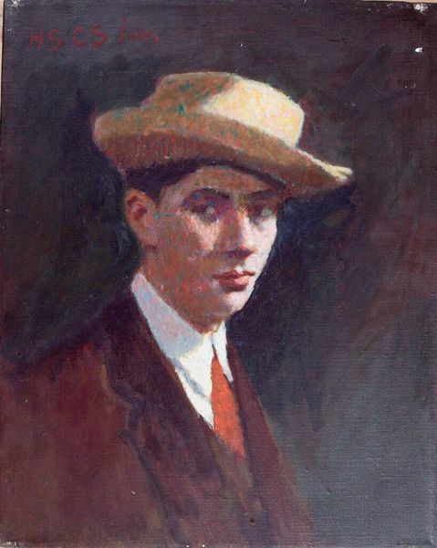 Editor: So, this is Denman Waldo Ross's "Portrait of a Young Man in Red Tie," its dimensions are 35.6 x 25.4 cm. It looks like an oil painting, very straightforward. What do you see here? Curator: I see a study in representation. Ross was deeply involved in the Arts and Crafts movement, which critiqued industrialization. What does it mean to portray this young man, likely of a certain class, during a period of intense social change? The red tie, is it a statement? Editor: A statement of rebellion, maybe? Or just fashion? Curator: Perhaps both. Ross's interest in color theory adds another layer. Red can symbolize power, passion, or even anger. How does this contrast with the somber tones and the subject's averted gaze? Editor: I hadn't thought of it in terms of class and social critique. Curator: Art never exists in a vacuum. Considering the societal context allows us to understand the work beyond its surface. Editor: I learned a new perspective today. Thanks!