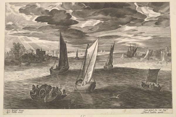 Editor: This print, titled "Zeilschepen" or "Sailing Ships," dates from 1752 to 1825, and is currently at the Rijksmuseum. Looking at the image, the first thing that strikes me is the incredible detail in the rendering of the waves and the sky, using what looks like engraving. What stands out to you in this piece? Curator: What captures my attention is how this seemingly simple nautical scene encapsulates a pivotal moment in Dutch cultural memory. These aren't just any ships, they're symbolic vessels that evoke the age of exploration, trade, and maritime power, a golden era etched in the collective consciousness. The sea itself is a potent symbol. Do you perceive anything about how it is drawn? Editor: I notice the water's surface looks rough, with short, choppy lines suggesting movement, a sort of agitation that adds to a feeling of dynamic energy. Curator: Exactly. Water has often carried meanings of flux, change and the subconscious. Consider the light pencil work: it almost romanticizes this relationship with the sea, the source of both fortune and tragedy. The individual ships serve as more direct emblems, too, representing journeys, not just physical voyages but also life's passages and challenges. Can you infer any contemporary analogies or cultural concepts related to these symbols? Editor: I guess in a modern context, thinking of migration or even the transport of goods and resources connects these older journeys to global themes. There’s a definite echo there. Curator: Precisely. It bridges past to present, and these sailing ships become emblems of an ever-changing, interconnected world. Thank you for opening to this perspective! Editor: It gives the picture a whole new resonance. Thanks for helping me dig a little deeper into this!