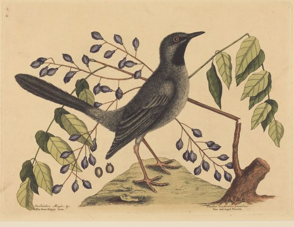 Curator: Here we have Elizabeth Gould’s “Enicurus Scouleri (Little Forktail),” an etching and print. The artist portrays the bird in simple realism. Editor: It's interesting how stark the figure is against this pale backdrop—almost ghostly, hovering rather than standing. It evokes a feeling of fragility. Curator: Notice the delicate precision with which Gould renders the bird’s plumage. The crisp contrast between the black and white markings and the meticulous detailing of the feathers invite a close reading of its texture. It really captures the essence of this particular species of forktail. Editor: Exactly. Considering the period and the context of scientific illustration, what does this dedication to realism truly entail? Gould’s work served a very specific purpose—to classify and represent a species within a colonial framework that aimed to inventory and control the natural world. Curator: Undeniably. But focusing on its compositional elements, consider the elegant posture, its form so well balanced on spindly legs. Observe how this etching and print allows for precise replication of this exquisite natural form. It achieves both beauty and taxonomic precision. Editor: But isn't that beauty implicated within those structures of power? These images often circulated to bolster the colonial gaze—translating living creatures into flattened, knowable objects—diminishing Indigenous knowledge. Curator: Of course. Still, the visual construction itself uses contrast, form, and line to build a detailed, albeit, two-dimensional form. The effect gives presence to an animal whose lifeways would probably stay hidden to us. The sharp focus does offer something arresting, apart from implications related to history and the colonial gaze. Editor: Right. Looking beyond the immediacy of visual components allows me to think critically about these prints as both an aesthetic and historical record. What are the tensions held between appreciation for the craft and a thoughtful acknowledgment of the structures that support their making and distribution? Curator: A key takeaway being that examining both intrinsic visual properties, and sociopolitical contexts allows for richer interpretive possibilities. Editor: I agree. This gives space for both scrutiny and appreciation within our contemporary discourse.