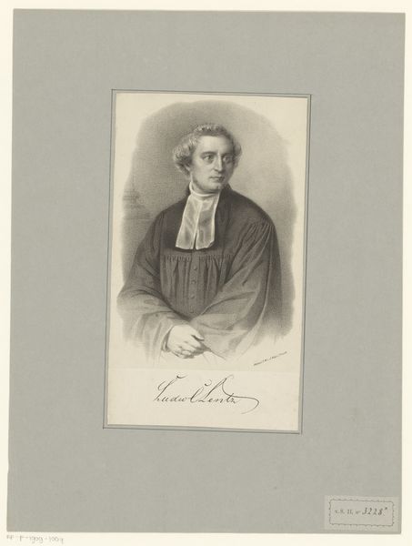 Editor: This is “Portret van Gerard Sandfort,” possibly from 1848, by Johann Peter Berghaus, currently at the Rijksmuseum. It’s a print, and something about its rigid formality feels very telling of the period. How do you interpret this work? Curator: I see a deliberate construction of identity, where visual symbols function almost like carefully chosen words in a formal declaration. Look at the subject's gaze – direct, unwavering, meant to project authority. What does his clothing suggest to you? Editor: I'd say respectability, a clear signal of status, perhaps even profession? Curator: Exactly. Consider the weighty fur stole, the precise cut of the coat, and that subtle medal. Each element speaks to Sandfort's place in society. It isn't just a portrait; it is a deliberate crafting of legacy, isn’t it? Think about how portraiture, especially then, was about controlling the narrative of one's life. It begs the question, doesn’t it? What aspects of himself did Sandfort wish to immortalize, and why? What is missing? Editor: It's like he's curating his own image for future generations, consciously embedding these visual cues about his status. And I wonder, is that still what portraits do today, in a way? Curator: It is, perhaps even more so, though the symbols have evolved. We still use images to project identities, to shape our own narratives within cultural memory. Reflecting on how Sandfort presented himself can provide valuable insight into our continuous, yet ever-evolving, image-making practices. Editor: I hadn’t thought about portraiture in that way, as a means of actively shaping cultural memory. Curator: Indeed. And it enriches our understanding not just of the subject, but the society that shaped them.