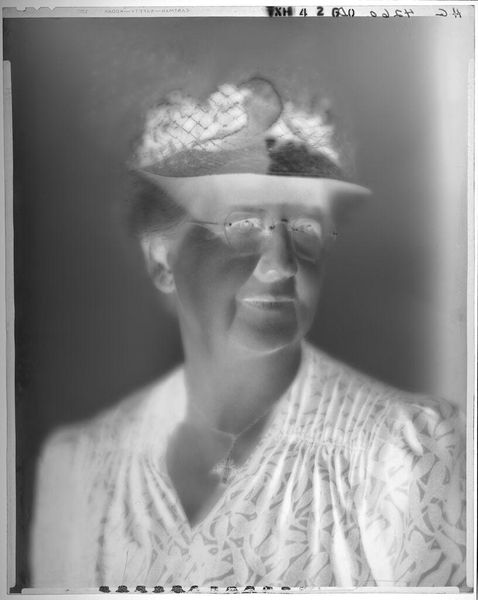 Editor: Here we have an untitled portrait of a woman from the Hamblin Studio, a black and white photograph. It feels almost dreamlike, ethereal. What catches your eye in this piece? Curator: For me, it’s that tension between clarity and something almost haunting. The negative space gives her a ghostlike quality, and yet, there's such an intimacy in her gaze and the delicate lace details. I wonder, is it a record of someone specific, or more of an idealized type? Editor: That's a beautiful thought. It makes me consider the power of photography to both capture and create a reality. Curator: Exactly! It blurs the line, doesn't it? Leaving us with more questions than answers, which is often the most intriguing part.