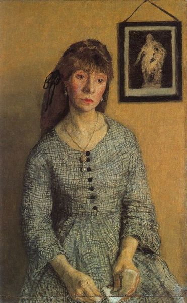 Gwen John's painting, Girl with Bare Shoulders, presents us with a young woman rendered in muted tones. Her pale dress, cinched with a dark band, contrasts with the shadowy background, creating a study in subtle luminosity. John's formal approach here speaks volumes. The careful arrangement of light and shadow, the figure's elongated form, and the subdued palette converge to evoke a sense of quiet introspection. There is an undeniable stillness, a kind of melancholy that permeates the composition. This work can be seen as a commentary on representation and the gaze. The girl's averted eyes and reserved posture resist the objectification often found in portraiture, challenging conventional power dynamics. John's structural use of color and line serves not just aesthetic ends but also as a means to subtly critique the societal norms of her time.
