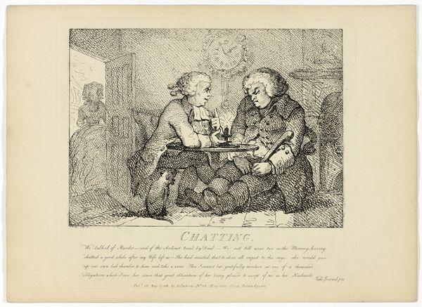 Thomas Rowlandson created this etching, "Wit and Wisdom, from Boswell's Tour of the Hebrides," capturing a culinary exchange. Look at how these characters are built: a corpulent man facing a woman rolling pastry, possibly a wife. The rolling pin she wields is more than a kitchen tool; it embodies domestic authority, reminiscent of the scepter, an age-old symbol of power. We see the rolling pin in domestic scenes across centuries. Think of similar phallic objects in classical depictions; the staff of Asclepius, for instance, also embodies notions of power and authority. This symbol, charged with potency, mirrors the psychoanalytic concept of how everyday objects can become vessels of deeper, often subconscious, meanings. Notice the emotional charge in this seemingly simple scene. It resonates with tensions beneath the surface, engaging viewers on a deeply embedded cultural level. This symbol transcends time and space, subtly altering its hue with each reappearance.