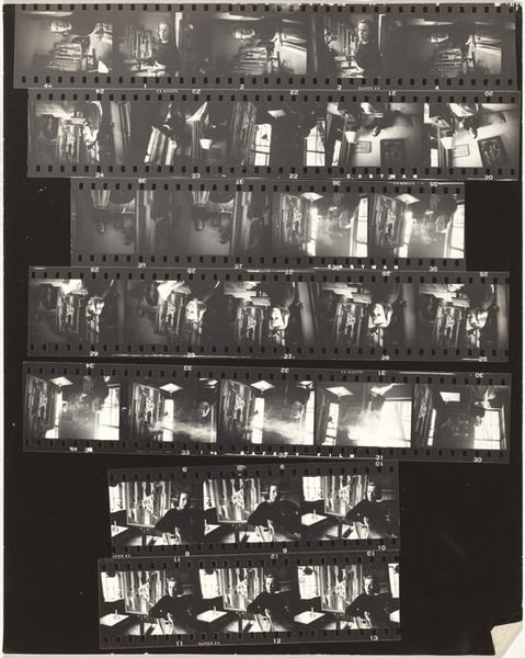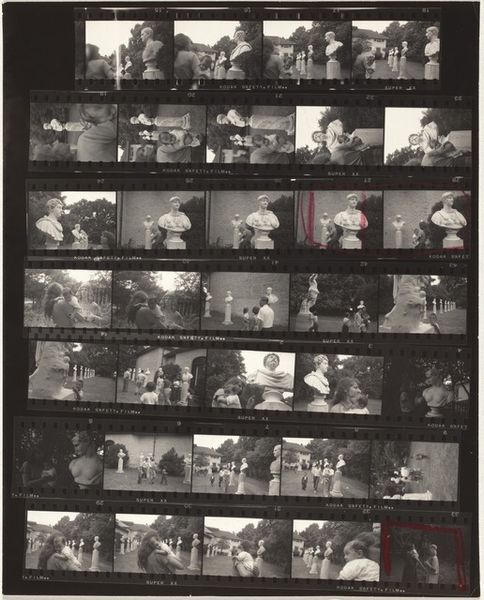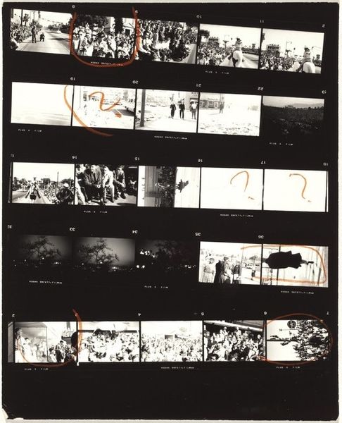 Curator: This is an untitled photograph by Jack Gould, part of the Harvard Art Museums collection, depicting children waiting in line to use a drinking fountain. Editor: The stark, almost ghostly tonality gives it a slightly unsettling feel, doesn't it? The composition, with the line receding into the distance, is quite effective. Curator: Indeed. Knowing the historical context of segregated drinking fountains adds a layer of meaning. The image then speaks to broader issues of access, inequality, and the lived experience of children in that era. Editor: The formal arrangement of the children, their postures... it's almost a study in anticipation. The use of light and shadow reinforces this sense of delayed gratification. Curator: Absolutely, and that juxtaposition of the individual thirst being quenched with the communal patience underscores the power dynamics at play. Editor: I’m struck by how the inverted palette highlights the formal elements while obscuring the subjects' humanity. It gives one pause. Curator: Precisely. The photograph invites us to reflect on the systems that shape our access to even the most basic resources.