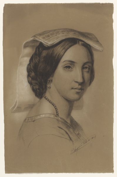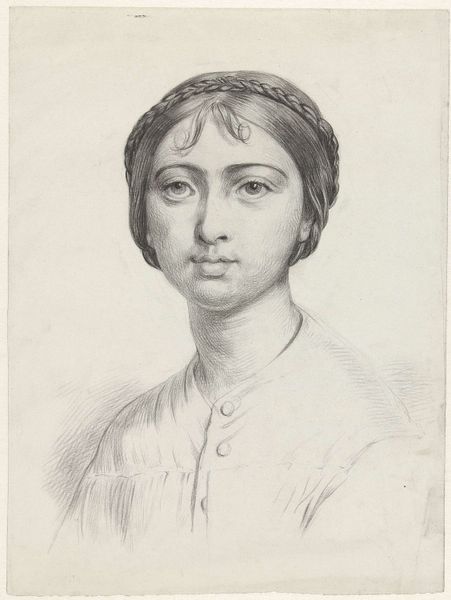 Curator: We’re looking at "Head of a Girl", a pencil drawing by George Hendrik Breitner, likely created sometime between 1867 and 1923. It resides here at the Rijksmuseum. Editor: There’s something so delicate about this. Her gaze feels incredibly direct, but also somehow wistful, as though she is about to impart a very quiet secret. It feels very intimate to me. Curator: It’s interesting that you say “intimate.” Breitner, particularly known for his paintings and photographs of bustling city life, offers us this quiet portrait that showcases his skill with a medium readily available and often associated with early stages of art production and studies, challenging conventional ideas of “high art”. Consider the economic accessibility of pencils and paper versus oil paints and canvas, especially for working-class artists or students. Editor: Absolutely! And that accessibility translates directly into the mood, doesn't it? There's an immediacy, an unpretentious quality here. The slightly smudged shading around her eyes and the loose strokes that define her hair speak to the hand of the artist, capturing not just her likeness, but a fleeting moment of introspection. One almost feels the grain of the paper... Curator: Indeed. Moreover, Breitner's choice of pencil also positions this piece within a larger discourse about labor and skill. The efficiency of drawing— its speed, relative ease of correction—suggests a mode of artistic production geared towards capturing modern life's transience and it also showcases an intimacy not found in studio practices using models. Editor: Which is so fascinating when juxtaposed against his urban scenes, no? This hints at a whole other, quieter, side to his practice. Perhaps he was developing skills, and the cityscapes are explorations of the self... She does have that air of his "muse". Curator: Precisely. And to consider the materiality, graphite itself has its history within industrial development of 19th-century— reflecting broader industrial contexts, it ties even the most seemingly private moments to processes of manufacturing and consumption. Editor: So beautifully put. This has offered so much more depth to this girl. She suddenly is sitting in our current present tense, and also fully embedded in hers. Curator: Yes. Looking closer at a piece like this forces us to reconsider hierarchies around art forms.