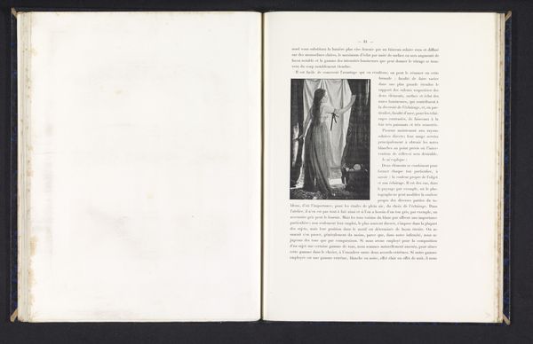 Constant Puyo captured this interior scene in a photograph, a medium that, like painting, can distill and convey complex cultural ideas. Here, we see a standing woman, poised in a space adorned with draped fabrics. Consider the significance of drapery. It reappears throughout art history, from classical sculptures to Renaissance paintings. Think of the flowing garments of Greek goddesses or the Madonna's robes in religious art. These are not mere folds of fabric; they represent status, identity, and emotional states. The way fabric clings, conceals, and reveals is loaded with meaning, offering clues to understanding the female figure. Here, the soft curves and undulating lines of the drapery suggest a similar psychological depth. The collective memory of these images connects us to the subconscious associations we have with such artistic representation. The image engages viewers on a deep, subconscious level. Thus, the draped fabric resurfaces, evolves, and takes on new meanings across time.