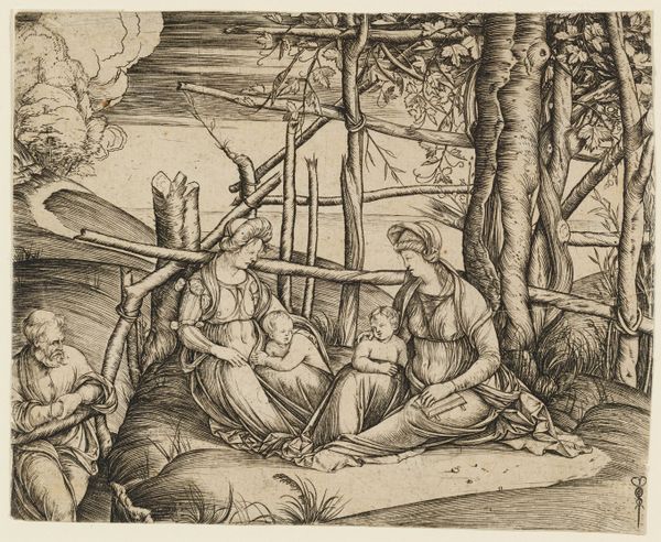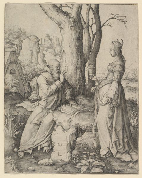Editor: Here we have Albrecht Durer’s "Ill-Matched Couple," a woodcut print from the late 15th or early 16th century. The contrast between the youthful woman and the elderly man is immediately striking, giving the piece a somewhat unsettling, almost satirical, air. What social commentary do you believe Durer is offering us with this image? Curator: This print serves as a window into the anxieties surrounding social mobility and the evolving class structures of the Northern Renaissance. Durer, likely commenting on the rise of wealthy merchants and the anxieties surrounding shifting power dynamics, uses the ‘unequal lovers’ trope to critique these developments. It speaks volumes about the public perception of marriage as a transaction rather than a union of affection. Editor: So, the image critiques the social and economic climate rather than offering just a personal observation? Curator: Precisely. The choice of the woodcut medium itself is significant; its accessibility allowed for wider dissemination of such critical commentary. Consider where it was displayed, its impact on the common people, and how its reception changed over the centuries with shifting social standards. How does it resonate with you, considering contemporary social issues? Editor: It’s interesting how relevant the anxieties around wealth and power remain, even today. Perhaps art like this encourages us to look critically at our own societal structures and biases. Curator: Absolutely. It’s a testament to Durer’s enduring impact. The artwork serves not only as an historical document but as a potent catalyst for reflection on contemporary culture and issues.