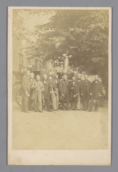 Editor: So, we are looking at a photograph here, "Groepsportret van leden van het Amsterdamsch Studenten Corps," or Group Portrait of Members of the Amsterdam Student Corps, taken around 1897 by Nicolaas Schuitvlot. It's a gelatin silver print, and it really captures the spirit of camaraderie, but also this distinct late 19th-century Dutch vibe. I am struck by the almost theatrical way they're posed. What are your initial thoughts on this piece? Curator: Theatrical is an excellent observation. Group portraits like this one were carefully staged social performances, weren't they? How does this image position itself within a specific historical moment and power structure? Editor: Could you elaborate on what you mean by "power structure"? Curator: Consider who is being represented here: the Amsterdam Student Corps. What does it mean to be a member of this organization in the late 19th century? Who has access, and who is excluded? Photography was gaining prominence and accessibility then, so this image marks an interesting intersection of technology, social class, and institutional identity. Notice how they present themselves – their attire, their posture, even their facial expressions. Editor: That makes sense. I didn't think about it that way. The fact that this photo immortalizes this exclusive group definitely gives it an edge. You also notice this sense of pride and maybe a desire to assert their presence and social status? Curator: Precisely. It’s also worthwhile to ask where images like this end up – in albums, displayed in homes, or archived by the organization itself, reinforcing their internal sense of cohesion and their public image. So how do spaces like museums change their meanings and impact? Editor: So it’s more than just a photo; it’s about visibility, preservation, and perpetuation of an institution’s values. Curator: Exactly! This portrait, in its original time and today in a museum, raises questions about who gets remembered, and what stories are told about them. It speaks volumes about power, representation, and the enduring influence of institutional culture. Editor: It makes you think about the layers of meaning that are hidden in plain sight.