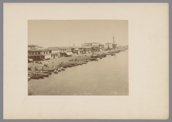Editor: Here we have "View of Docks in Bombay Harbor," a gelatin-silver print taken by F.B. Stewart sometime between 1870 and 1910. There’s almost a watercolor effect with its muted colors and soft focus, creating a serene and rather romanticized depiction of a bustling harbor. How do you interpret this work, particularly considering its historical context and materiality? Curator: Well, let's think about gelatin-silver prints. Their proliferation coincided with the rise of industrial capitalism. Here, we see it used not just for documentation, but to create a picturesque scene. How does the manipulation of this mass-producible material—photography—to evoke painting aesthetic impact your understanding of colonial-era orientalism at play here? Editor: That’s a really interesting point! I guess it softens the impact, almost distancing the viewer from the reality of colonial exploitation, instead focusing on this gentrified view? It’s as if the means of production – gelatin silver printing– are being used to make something that looks like art. Curator: Precisely. Look closer: consider the labor involved in running a port of this scale, a key instrument of colonial extraction. This photo seems to sidestep all that. This gelatin print becomes a vehicle for projecting a desired image, essentially obscuring labor behind the romantic vista. Does that change how you view it? Editor: Definitely. I see how the photograph's very materiality and the choices made in its creation are laden with meaning. Thanks! Curator: It makes us realize that even seemingly objective mediums like photography are deeply intertwined with social and economic structures. A crucial lesson.