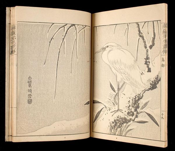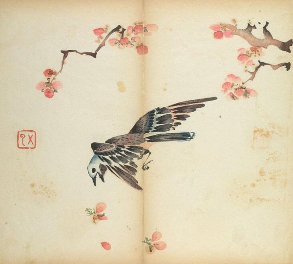 Editor: Here we have "Two Flying Birds" from the Ten Bamboo Studio Manual, by Hu Zhengyan. I find the composition fascinating, how the birds are placed in relation to the branches. What can you tell me about the significance of this image within its historical context? Curator: Well, consider that this comes from a manual—a guide intended for wide distribution. This image, therefore, represents a particular vision of nature meant to be emulated, shaping aesthetic values and reinforcing cultural norms about harmony and the natural world. Editor: So, it's less about individual expression and more about setting a standard? Curator: Exactly. The very act of compiling and disseminating such a manual speaks to the institutional power dynamics at play in shaping artistic taste. It also indicates the burgeoning print culture of the time and its influence on artistic production. Editor: That's a great point, it's a reflection of the public role of art and education. Thanks! Curator: My pleasure. It's a reminder that art is always embedded in broader social structures.