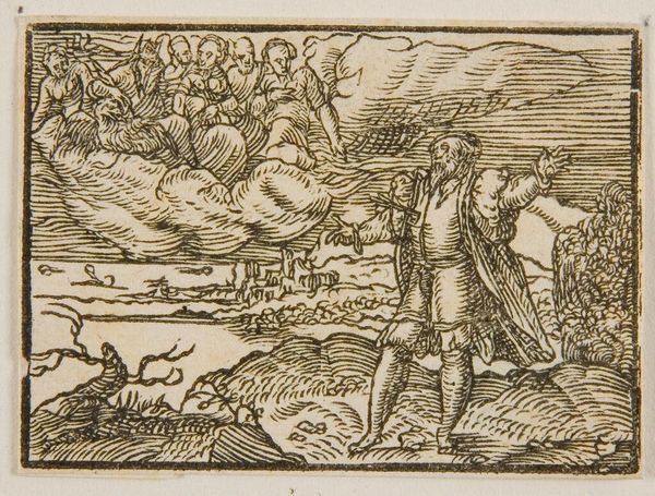 Editor: This is Hans Holbein the Younger's "2 Chom. XXXII", a print from the Harvard Art Museums. It depicts a chaotic battle scene. What do you see in this piece beyond the immediate violence? Curator: This work is charged with the intersection of religious war and political power. Holbein, a master of the Reformation era, shows not just conflict but the divine justification claimed by aggressors. Look at the figures in the sky; who do they represent? Editor: Angels, perhaps? Bestowing divine favor? Curator: Exactly. Consider how this imagery implicates those who use faith to mask the violence and oppression inflicted upon marginalized groups. What responsibility do artists have in challenging such narratives? Editor: That’s a lot to think about. Thanks for opening my eyes to these contexts. Curator: My pleasure. Art like this forces us to confront uncomfortable truths about power, belief, and representation.