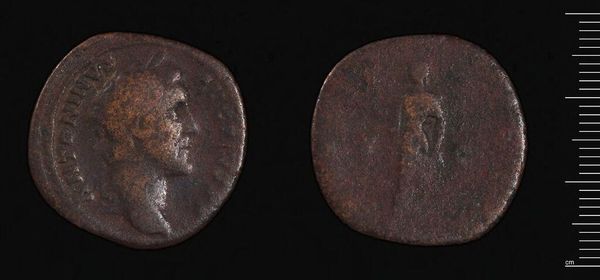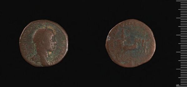 Editor: This sestertius, attributed to Faustina II, has such a fascinating patina. The textures seem to tell a story of age and use. What do you see in the composition of this coin, focusing on the form and structure itself? Curator: The effigy, precisely rendered in profile, commands attention. Note how the engraver utilized the circular format, creating a self-contained space. The figure on the reverse echoes this containment, its posture reinforcing the coin's inherent shape. Editor: It's interesting how you focus on the shape. Are you saying the coin's circular form dictates the figure's pose? Curator: Precisely. The artist displays a mastery of form, fitting subject to material. This is more than currency; it is a study in spatial relationships. Editor: I see what you mean. Thinking about the shape and the figures within, it adds another layer to its meaning. Curator: Indeed. Form dictates function, and in this case, elevates it to art.