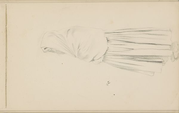 Editor: Here we have Lucien Verbeke’s “White Satin Hat,” a pencil drawing from around 1937. I’m struck by how delicate it looks; it's almost as if you could reach out and feel the softness of the fabric. What's your take on this seemingly simple subject? Curator: The choice of subject, a fashionable hat, is not as simple as it appears. During the 1930s, fashion became increasingly accessible through mass media. So this drawing engages with questions around the democratization of style. Is it aspirational, capturing an elite object, or is it part of a broader trend, making fashion accessible to the everyday woman? What does the repetition of the hat suggest to you? Editor: That's an interesting point. I guess the two hats could be seen as emphasizing its design, making it accessible for reproduction and distribution. Is that a fair reading? Curator: Precisely. It raises questions about originality versus reproduction, particularly relevant in a society increasingly influenced by mass production and media. Consider how Verbeke, by rendering it in pencil, a medium accessible to many, potentially further democratizes this emblem of style. The delicate lines, as you mentioned, invite a connection beyond mere visual consumption. Do you see anything in the presentation that hints at the social role this object might play? Editor: Well, the clean backdrop makes it feel almost like a product advertisement or a catalog image. Curator: Exactly! Think about the rise of consumer culture. An artwork like this isn't just about the object itself; it reflects the broader cultural landscape where fashion played an increasingly prominent role in self-expression and social mobility. I think studying its function really contextualizes the role it plays within visual culture. Editor: I hadn’t considered how fashion of the era spoke to this bigger story about consumerism and access. Thanks! Curator: My pleasure. It highlights how even seemingly simple images can be quite complex reflections of their time!