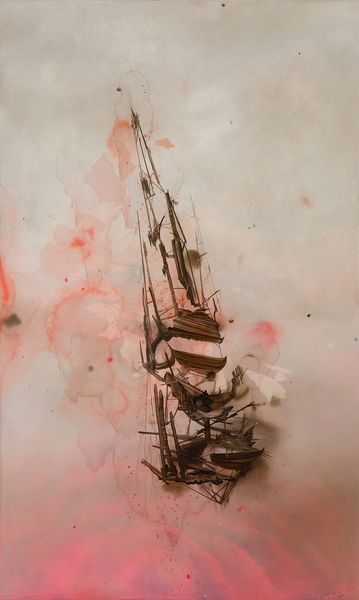 Darren Waterston created this large-scale artwork, "Edifice," using oil and alkyd on linen. The canvas presents a washed-out vista, dominated by muted greens and grays that evoke a sense of melancholic reflection. Within this abstracted landscape, fragmented structures emerge, their forms dissolving into the atmospheric haze. Waterston plays with the notion of architectural stability by rendering buildings in a state of perpetual decay, challenging our understanding of permanence. The semiotic implications here suggest a broader commentary on the transient nature of human endeavors and the inevitable entropy of constructed systems. Note how the dissolution of form invites us to question fixed meanings, suggesting that even the most solid structures are subject to the fluid dynamics of time and interpretation. In doing so, the work positions itself within a larger philosophical discourse on impermanence, inviting viewers to contemplate the provisionality of existence itself.