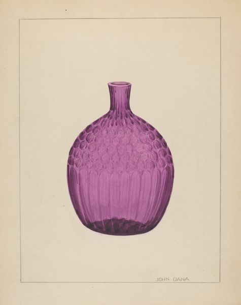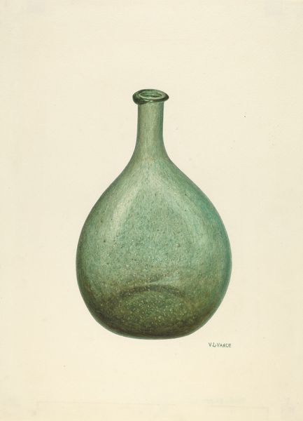 V.L. Vance made this watercolor flask sometime between 1855 and 1995, and what I notice first is how the artist coaxes the form out of the white of the paper, building up layers of transparent washes. There's a real sense of seeing the object represented, the surface shimmers with light, but there's also a celebration of the materiality of the medium. The subtle gradations in tone, from the darker base to the lighter upper regions, give the flask a sense of volume and depth. It's almost as if Vance is inviting us to contemplate the very act of perception. I keep looking at the spiralling lines that give the glass its texture. Each of these marks seems to be carefully considered. The work reminds me of Giorgio Morandi's still-life paintings, in the way that it elevates everyday objects to a level of contemplation. It's about seeing, feeling, and thinking through the act of painting.