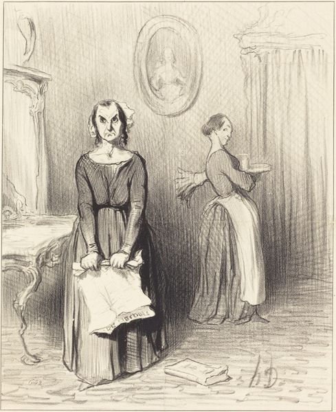 Editor: This is "The Bird-Cage," a gelatin-silver print from around 1845 by David Octavius Hill. It depicts two women with a birdcage. There is a distinct sense of quiet melancholy about the image. I wonder, what is your take on it? Curator: I'm immediately struck by how Hill, through his photography, engages with established genre painting tropes within a rapidly evolving visual culture. Consider how popular imagery, distributed through prints and books, influenced perceptions of women and domestic life. How does the subject matter and its treatment reflect the prevailing social expectations of women during that period? Editor: So you see this as a commentary on the social roles of women? Curator: Partly, yes, I think that’s an unavoidable interpretation. Look at how the birdcage, a common symbol of domesticity and confinement, is positioned. Is the bird a pet, a possession, or something more? It provokes contemplation about liberty and captivity in general, and within that, the situation of women in that era. What expectations of behavior and agency were at play then, influencing artists and their audiences? Editor: It is striking how they both seem to be gazing wistfully into the cage, with quite sober faces. Were images such as these usually created for public consumption, in galleries and exhibits, or more likely to be circulated among certain social circles? Curator: Early photography inhabited both worlds. Exhibitions played a role, but so did private circulation amongst networks of artists and intellectuals. Remember, photography was still proving its artistic legitimacy at the time, seeking validation from established art forms like painting. This photogravure subtly engages with discussions around artistry, authenticity and representation. It highlights the increasing social role of art. Editor: I hadn’t considered the political weight that images can carry, I will certainly think more critically about the social context moving forward. Curator: Precisely. Every image is both a product of and a contributor to cultural discourse. It’s through understanding those dynamics that we truly appreciate the power of art.