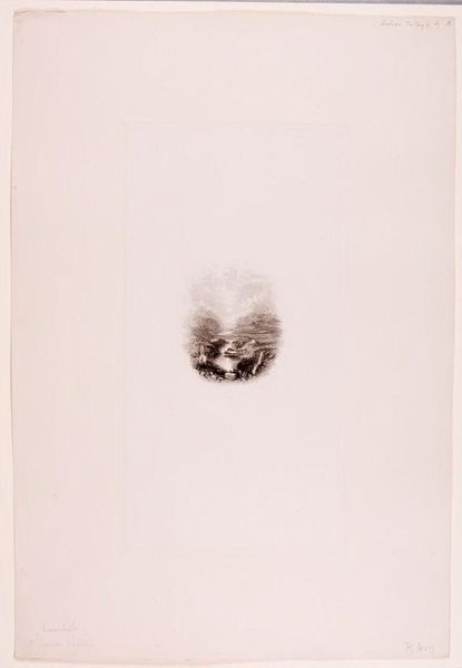 Editor: This is Edward Goodall's "Lake of Como I", a small etching. It's so delicate, it almost disappears on the page! What can you tell me about its story? Curator: It’s interesting to consider who has had the privilege to travel and consume such scenery. Lake Como, historically a playground for the elite. Who are these figures in the boats, and whose perspective are we adopting? Editor: So, the work isn't just about a pretty scene, but about power and access? Curator: Exactly. Consider how landscape art often omits the labor that sustains it. By questioning whose gaze is centered, we start to unravel deeper social and economic narratives. Editor: That's given me a lot to think about, it complicates a simple first impression.