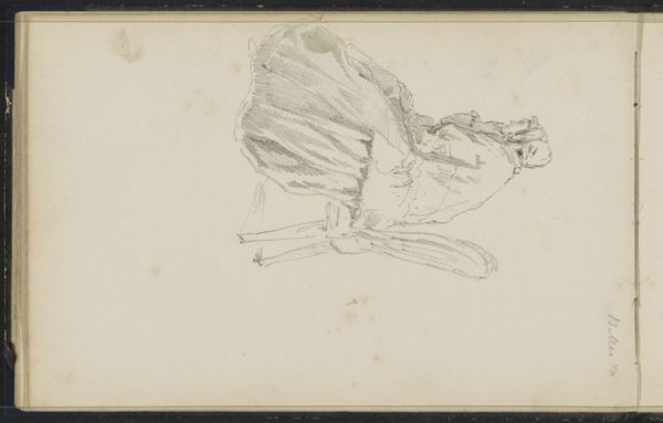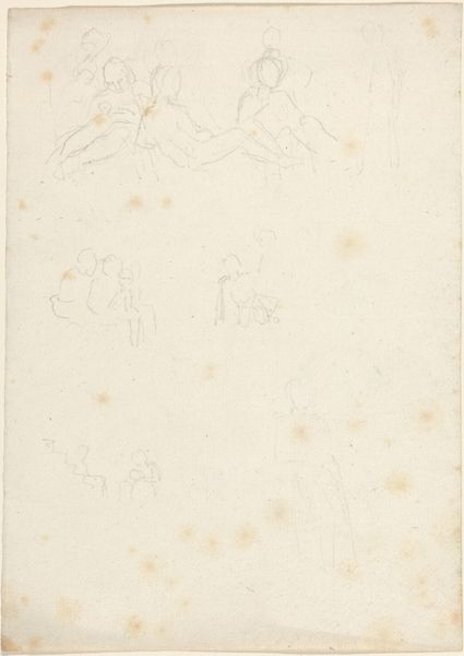Editor: Here we have "Paard, naar rechts," or "Horse, Facing Right," a graphite drawing on paper by Gerard ter Borch, dating back to 1665. It's quite faint, almost ephemeral. I'm struck by the starkness of the drawing against all that blank space... What stands out to you? Curator: I’m interested in how ter Borch, a sought-after painter of genre scenes, is engaging with social status and its performance. The drawing style seems rapid, almost a note or a preliminary sketch for something larger. This begs the question: What was the horse’s social role at the time, and who might have commissioned or owned such an image? Editor: A symbol of status, definitely. You rarely see horses depicted without considering their owner. Does the medium, graphite on paper, have implications for who might own the image? Curator: Absolutely. Graphite drawings were often preparatory sketches or studies, allowing artists to quickly capture form and light. So, perhaps this horse was intended for a larger composition, hinting at wealth or power dynamic. Think about the socio-economic conditions that fueled the art market and defined who could afford such representations. Editor: So, it might be a preliminary sketch meant to highlight someone’s position in society, and then Ter Borch abandoned the project. Curator: Precisely. Its “unfinished” state might also reflect the changing patronage and shifting power structures of the time. Art wasn't always about polished finished products; the process itself carried meaning. Editor: I never really considered the politics inherent in an artist's process. Curator: Art is almost always political; we just need to learn how to look! I never quite understood how the history behind the work of art also affects the present of a piece of art. Editor: Indeed, thank you! It definitely shifts my understanding of it.