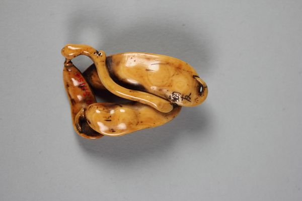 This netsuke of a toad sitting on a straw sandal was created by Kokei. It is currently located in the Minneapolis Institute of Art. The deep brown of the wood, carefully carved, invites a close look. The artist meticulously renders the toad’s bumpy skin and the sandal's textured surface. This piece is compelling through its use of form. Through the composition we find a destabilization of established meanings. The toad, typically an overlooked creature, is elevated. In terms of semiotics, it challenges the common cultural codes associated with beauty and status. The toad resting on a simple sandal—an object connected with travel and labour—presents a subtle commentary on societal values and the everyday. The attention to detail and the careful arrangement of forms create a focal point that draws the eye, making us reconsider the ordinary as a site of value. This functions not just aesthetically but also as a profound engagement with cultural and philosophical discourse.
