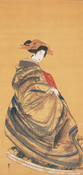 Yamaguchi Soken created "Ladies of the Warrior Class" with ink and color on silk during the Edo period, a time of shifting social roles in Japan. These women, likely wives or daughters of samurai, occupy a complex position. They are adorned in luxurious kimonos, signifiers of their status, yet their subdued expressions hint at the constraints placed upon them. During the Edo period, samurai women were expected to manage the household, raise children, and maintain the family's honor, and their lives were heavily regulated by Confucian ideals. The arrangement of the figures, with one standing and two seated, could subtly represent the hierarchy and expected behaviors within their social sphere. Soken's delicate brushwork captures the beauty and grace associated with these women, but it also invites us to consider the sacrifices and limitations inherent in their roles. The painting serves as a poignant reminder of the intricate relationship between gender, class, and identity in historical narratives.
