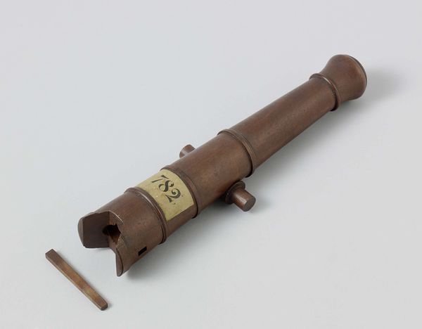 Editor: Here we have a "Model of a 24-Pounder Breech-Loading Gun," created in 1829. It's a wooden carving and immediately makes me think about childhood toys... but obviously, it represents something quite serious. What kind of a statement do you think this piece is making? Curator: It’s fascinating to consider the public role of such an object. It appears to be a scale model, likely used for instruction or demonstration. We should ask, what purpose did such a model serve within the social and institutional context of 1829? Was it intended to glorify military power, educate engineers, or simply document technological advancement? Editor: So you're suggesting it's less about the romanticism of battle, and more about the science behind weaponry? Curator: Precisely. And it highlights a complicated issue: the presentation of objects related to warfare in museums. How do we balance historical accuracy with the ethical implications of showcasing instruments of destruction? Does displaying this model normalize or even sanitize the violence it represents? Editor: I hadn’t considered the ethics of display! It really forces you to think about the museum’s role in shaping public opinion. Curator: Exactly. Furthermore, who was the intended audience? Access to such models likely reflected existing power structures. Consider how this piece, even as a representation, would be perceived by different social classes. Editor: This definitely makes me look at the gun model from a completely different angle, recognizing how it intersects with military history and social inequality, and that a museum display has an inherent power. Thanks for pointing that out! Curator: Of course. The dialogue between art and society is always a complex one.