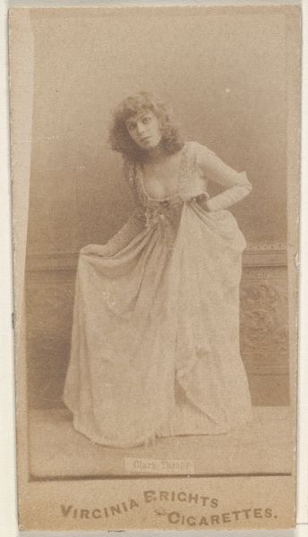 Card Number 120 was produced by Duke Sons & Co. to promote Cameo Cigarettes using mass production techniques typical of the late 19th century. This card, featuring actress Laura Burt, would have been printed using photo-lithography, a process involving the transfer of a photographic image onto a stone or metal plate, and then printed in large quantities. The sepia tone and the texture of the card stock give the image a soft, aged appearance. The high production volume belies the card's small size. Such cards were integral to the burgeoning consumer culture, demonstrating how images of celebrities were circulated to promote mass-produced goods like cigarettes. Consider the labor involved in creating such a card. From the photographers and lithographers to the factory workers packaging cigarettes with these inserts, this card is a tangible reminder of the intersection of art, commerce, and labor in the Gilded Age. It underscores how capitalist modes of production permeated even the most intimate aspects of daily life. By understanding this context, we can appreciate the card not just as a piece of ephemera, but as a cultural artifact, that reflects the material conditions of its time.