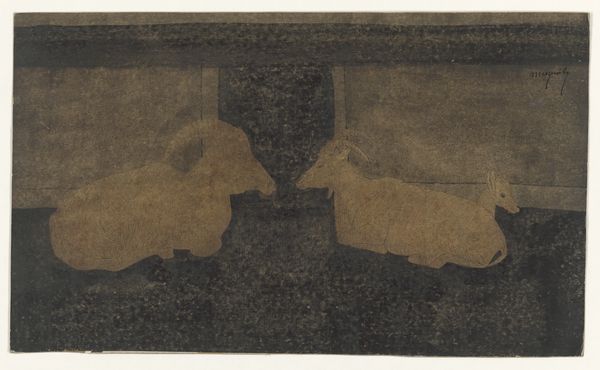 Curator: Welcome. Here we have "Stone Garden of Ryoanji Temple, Kyoto (Ryoan Fixed Stones)" by Tadashi Nakayama, created in 1961. It's a woodblock print that beautifully captures a scene from this iconic Zen garden. Editor: My first impression is the image’s surprising starkness. The composition uses contrasting bands to frame a small selection of illuminated shapes across a dark field. It feels almost spectral, a fleeting moment made permanent. Curator: The horizontal lines dominate the visual plane, creating a layered effect. The varying thickness and tone establish a sophisticated textural framework. Look closely, and you'll note that Nakayama utilizes a limited palette, focused on tonal shifts in order to evoke the textures of the rocks. Editor: Right. But what does Ryoan-ji itself *mean*? Its rocks represent islands or even mountains in an endless sea, inviting meditative wandering. The carefully arranged stones encourage the viewer to find their own path. So it's less about literal rocks and more about metaphorical journeys, etched in the collective memory. Curator: Intriguing point! Consider the reductive nature of woodblock printing and its impact here. Nakayama hasn’t given us the garden verbatim. He has presented its fundamental elements - the abstract essence of the garden reduced to formal essentials. Editor: Yet, in this act of stripping away details, the artwork opens up to a richer interpretation. The monochrome enforces an aura of mystery, of age. It hints at impermanence, as is valued within both Buddhist teachings and "ukiyo-e." What is solid, what is real, and what will erode away to nothingness over time? Curator: Nakayama successfully balances representation and abstraction. He offers an insight into the symbolic dimensions of a space as profoundly calming and spiritually evocative as the Ryoanji. Editor: I think that both Nakayama's chosen medium, and formal composition serve to give voice to our universal human quest for balance, inner peace, and meaningful space.