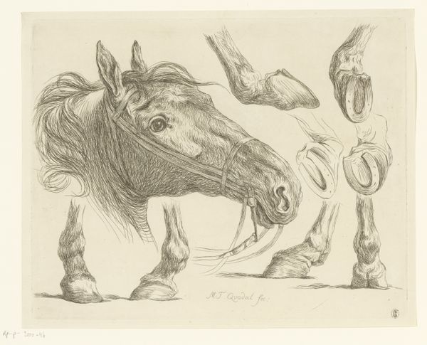 Editor: Here we have “Head of a Horse and a Foal Facing Left,” a drawing of unknown date by Teutwart Schmitson. It's rendered in pencil, chalk, and charcoal on paper. The composition feels almost like a study, focusing on the details of the animals’ heads. What can you tell me about it? Curator: Notice first the selection of materials – humble, accessible. Charcoal, chalk, pencil: these are the tools of practice, of learning a craft. Schmitson isn't necessarily aiming for a polished, "finished" work. Instead, the focus is on the process of observation and capturing form. Editor: So, it's about the labor and skill of the artist rather than the inherent value of the materials? Curator: Precisely. Consider the economic context. Access to expensive pigments and supports was limited. Drawings like these democratized artmaking, using readily available materials to create images, emphasizing skill and process. The rough paper supports that idea as well. It is more important for sketching and easy for everyday consumers to purchase for learning to draw. Editor: That's fascinating! It challenges the traditional idea of art being tied to expensive materials. Curator: Absolutely. The "value" here resides in Schmitson's ability, his engagement with the physical world, and his transformation of these simple materials. How does that impact your viewing experience? Editor: It makes me appreciate the skill and the dedication involved. It shifts the focus away from some inherent preciousness to the hard work of the artist. I see now how something beautiful can be born out of a simple, direct process. Curator: Exactly, and understanding that process gives us a richer understanding of not only the art but the broader cultural forces shaping art production and consumption.