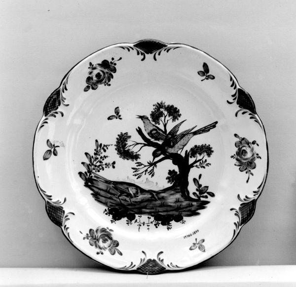 Editor: Here we have a porcelain plate from the Meissen Manufactory, dating to between 1740 and 1750. It features detailed floral and insect designs. It's making me think about the concept of fragility, both in the material and the ephemeral nature of the creatures depicted. How should we interpret this piece beyond its apparent aesthetic appeal? Curator: Beyond the surface, we must examine this plate within the broader context of its time. Rococo, after all, was about luxury and excess, often funded by colonial exploitation. So, who was served by this beautiful object? Did it symbolize power, status, a sort of willful ignorance of societal injustice? Editor: That’s a pretty stark reading. I see the flowers and insects as just being… pretty! Did people back then not just like beauty for beauty's sake? Curator: I'm not suggesting there's no aesthetic appreciation, but consider the socio-political undercurrents of 18th-century Europe. These handcrafted items became highly sought after. Who had access? How did that influence cultural norms, hierarchies? Was this artistry complicit with a social order? Editor: Okay, I understand what you mean. It’s almost like the plate itself is a display of… privilege? By focusing so intensely on this idealized natural world, are we looking away from real-world problems? Curator: Precisely. This era was brimming with societal inequality; thus, objects become enmeshed with ideologies. Who holds the power to cultivate beauty? Who has access to experience it? Those are crucial inquiries, ones we continue wrestling with today. Editor: Wow, that’s… a lot to consider when looking at a plate with flowers and bugs. Thanks. I hadn’t really thought about art this way before. Curator: It’s a pleasure to guide you through it! The story doesn’t reside in the art alone, but rather the intricate network linking history, people, and creative expression.