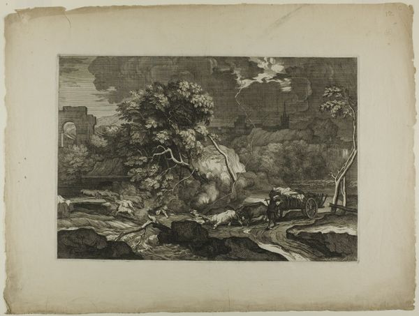 This print, Erysichthon, was made by Johannes and Lucas van Doetechum, using an engraving technique. The making of prints has always been connected to the wider world of work and commerce. In this case, we see a landscape featuring classical ruins, all rendered with a network of fine lines. To make this image, the artist would have used a tool called a burin to cut lines into a metal plate. Ink is then applied to the plate, and then wiped off the surface, remaining only in the incised lines. Finally, paper is pressed against the plate to create the image. The technique demands a high degree of skill and control, with the quality of the final print depending on the precision and artistry of the engraver. But printmaking has always been a reproductive medium, and one could argue that the real subject of the artwork is not simply the scene depicted, but the labor required to produce it. This tension is characteristic of all prints, and reminds us to look closely at the human effort involved in their making.