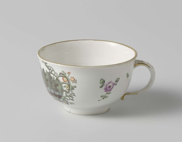This delicate porcelain cup, made by Koninklijke Porseleinfabriek Dommer & Co., is decorated with scattered flowers and golden spangles. Cups such as these were luxury goods, reflecting the wealth and taste of the Dutch middle classes. The seemingly innocent decoration speaks to the era’s broader social and economic context. The floral motifs, popular in decorative arts, signaled an appreciation for the natural world. The golden spangles add to the cup's preciousness, highlighting the owner's affluence and their participation in a culture of conspicuous consumption. Porcelain production itself was a major industry. Factories such as Koninklijke Porseleinfabriek Dommer & Co. became important institutions in shaping Dutch manufacturing and trade. Understanding this cup means considering its place in Dutch society. Contemporary sources like trade records, factory archives, and household inventories would shed more light on its significance. By researching these resources, we can reveal the story of this object as something deeply rooted in Dutch history.