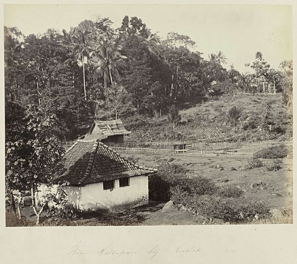 Editor: This is “Landschap naast Gadok met rijstvelden,” a photograph taken between 1863 and 1869 by Woodbury & Page, currently housed in the Rijksmuseum. I'm struck by how much information they managed to capture with early photographic technology. What can you tell me about the cultural symbolism at play here? Curator: The layered rice paddies, while literally a method of agriculture, are visually evocative. They represent both sustenance and the structured relationship between humans and nature. Consider the implied continuity, the never-ending cycle of planting and harvest deeply embedded in the community's memory. It reflects not just the practical necessity of food, but also a profound understanding of place and belonging. What emotions does the terraced landscape evoke for you? Editor: A sense of tranquility and deep connection to the land, maybe. I see a sustainable way of living, a harmonious blend of human activity and nature’s rhythm. But the photograph also feels… distant. Curator: Precisely. The distance introduces a layer of complexity. Photography, particularly during this era, can be seen as a form of documentation, often intertwined with colonial perspectives. Does the photographer's gaze capture genuine understanding, or perpetuate a sense of the exotic? Editor: That makes sense. So the rice paddies are more than just an agricultural technique; they're loaded with meaning, influenced by the photographer’s perspective and cultural context. Curator: Yes, these constructed landscapes carry coded information, layered over time and filtered through individual interpretations. What initially appears to be a simple scenic view can prompt meaningful contemplation of history, culture, and power. Editor: It's fascinating how much depth lies beneath the surface. This photograph reminds us that even seemingly objective images are rich with symbolism. Curator: Indeed. Understanding these visual cues unlocks deeper meanings and acknowledges the complex layers embedded within cultural representation.