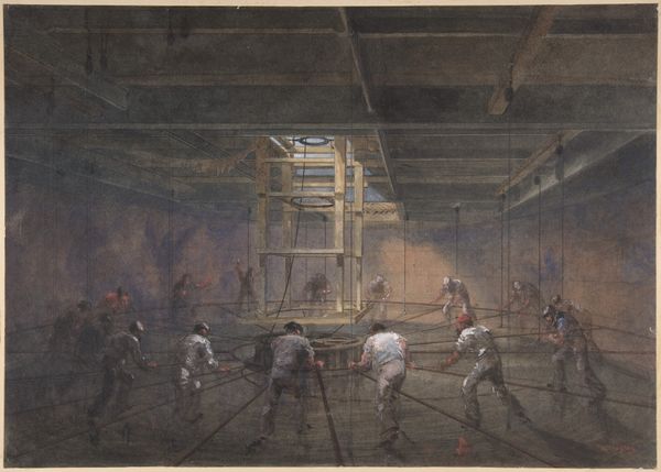 Robert Charles Dudley made this watercolor and graphite drawing of the Telegraph Construction and Maintenance Company around the 1860s. It depicts workers carefully moving reels of gutta-percha-covered conducting wire, a crucial component for laying underwater telegraph cables. This image isn't just a snapshot of industrial activity; it's a window into the Victorian era's technological ambitions. The successful laying of transatlantic telegraph cables revolutionized global communication, shrinking the world and accelerating commerce and diplomacy. The Greenwich factory, depicted here, was at the heart of this revolution. Notice how the artist emphasizes the scale and labor involved, highlighting the human effort behind this technological leap. Understanding the historical context—the rise of industrial capitalism, the expansion of global empires, and the relentless pursuit of technological advancement—is crucial to interpreting this drawing. Images like these, when coupled with archival research, help us grasp the complex interplay between technology, labor, and society in shaping our modern world.