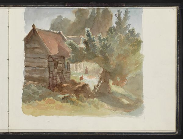 Here we see 'Cottages in an Extensive Landscape', a watercolor on paper created by William Henry Hunt. The work presents a rural scene dominated by soft, diffused light and gentle washes of color. The cottages, rendered with careful detail, sit nestled within the landscape. Hunt's composition reveals a keen attention to the interplay between architectural forms and the natural world. Note the use of watercolor: its fluidity allows for the depiction of atmospheric effects, like the cloudy sky, that blend into the distant hills. The cottages are more sharply defined, however, creating a contrast between the solid and the ephemeral. Hunt’s use of color and tone is carefully modulated, suggesting the subtle gradations of light. In its structure, the painting suggests a broader discourse, engaging with ideas of the picturesque and the sublime. Through his strategic placement of forms, Hunt creates an image that invites contemplation on our relationship with the natural world.
