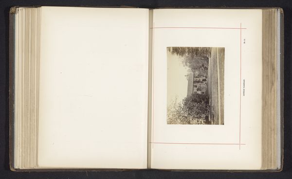 Curator: What strikes me immediately about this old photograph is the texture – everything looks a bit hazy, dreamlike almost. Editor: Indeed. The print, called "Woningen te Gongo", translates to Houses in Gongo and it’s attributed to Franz Thonner, around 1896. This landscape, though humble, resonates deeply. It pulls you in doesn't it? Curator: Absolutely! The buildings are nestled so closely with the nature surrounding them. Look how they practically dissolve into the dense foliage. I wonder about the dwellings. Are they truly homes, community centers, or does the symbol represent safety and unity for the artist? Editor: That contrast fascinates me. Note how the print renders depth. The shadows could equally stand in for sunlight creating warmth and security; at the same time, it emphasizes vulnerability and smallness when considering what else thrives within these landscapes. Curator: It definitely evokes that. Like, what is the real purpose of this settlement, considering that its symbolism suggests much about this location or culture during the 1890s? Editor: Right – what kind of collective experiences are we seeing hints of here? In the homes, but also this larger idea we’re invited to participate in. And, for me, this sense of participating suggests that this photographer might want to reveal something about our relationship to domesticity...to civilization, maybe? Curator: I see what you mean, and, again, it takes me back to thinking of my place, our place in the scheme of it all and to ponder, just what do those buildings contain? What do these settings enable? Editor: Perhaps it is precisely that ambiguousness that continues to speak so vividly to viewers, inviting a multitude of associations with past, present, or hoped-for futures? Thank you for this observation; I will definitely think more about those open avenues.